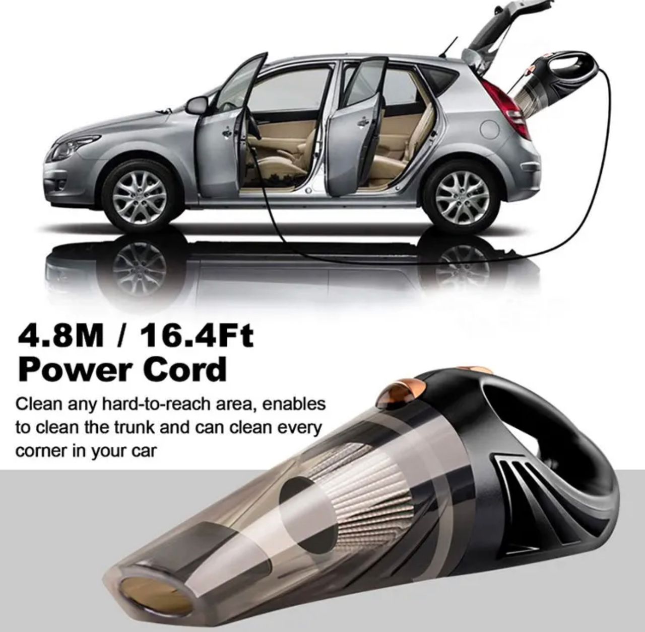 Portable and lightweight design, just plug the cord into your car's. 4m cord, long enough to clean all areas in your car, even the hard-to-reach areas